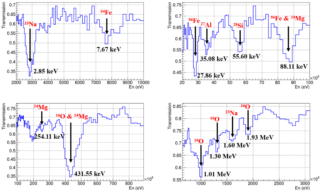 研究人员基于CSNS Back-n开展了NRTA技术可行性研究,对模拟月球土壤样品和南海文物样品进行了无损检测,成功检测并分辨了样品中含有的16O23Na24Mg27Al28Si40Ca54Fe56Fe63Cu65Cu等核素,研究结果表明CSNS Back-n平台非常适合开展NRTA技术研究与应用。本项研究工作中建立的技术与方法具有非常好的发展前景,有望作为一种无损检测手段运用到考古研究和特殊样品检测中。