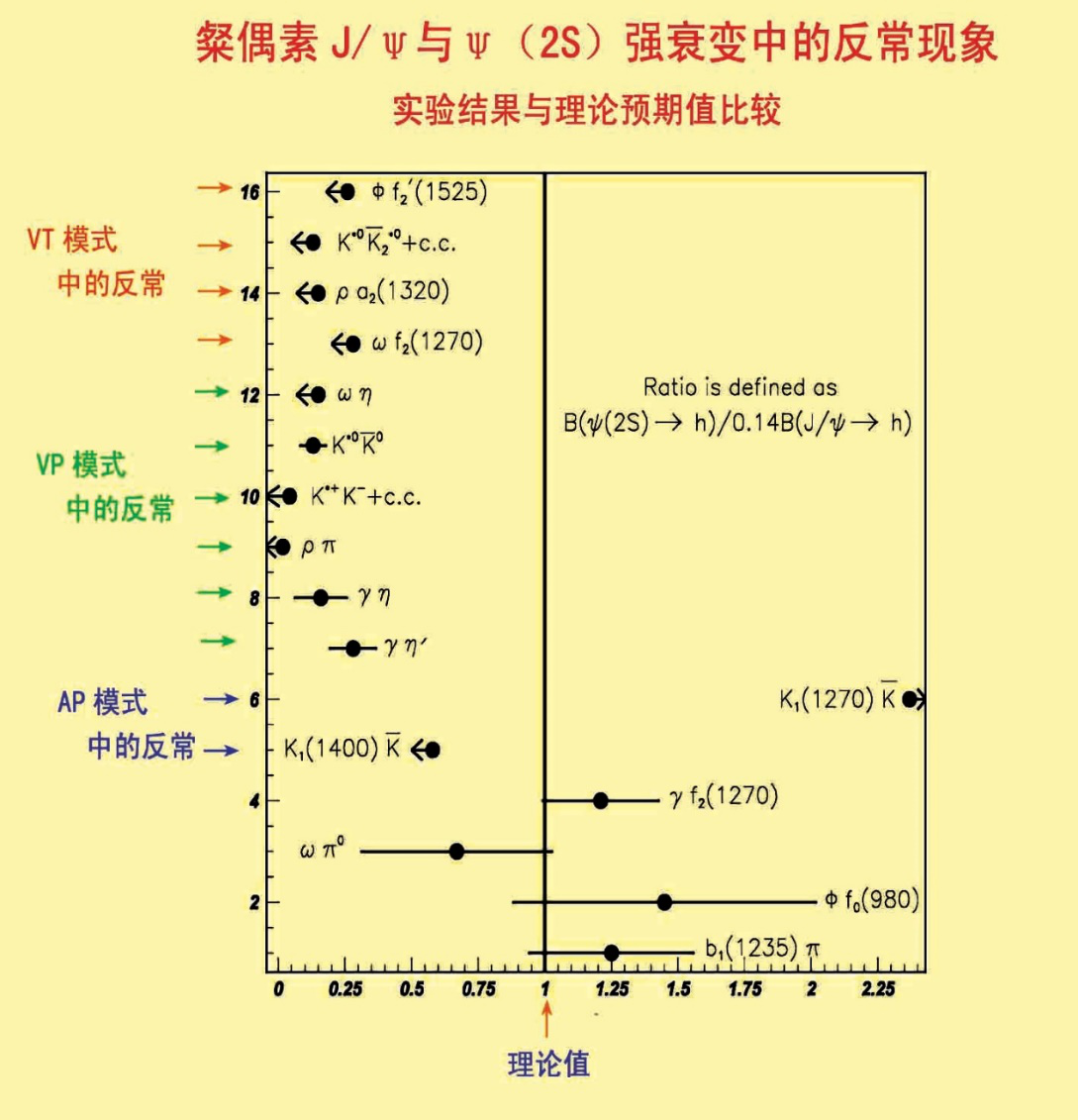 BES实验于1993-1995年采集了当时世界上最大的含400万ψ(2S)事例的数据样本,系统研究了粲偶素的性质,发现大量新衰变模式,完成了21项国际首次测量,观察到J/ψ和ψ(2S)强子衰变中的反常现象等新现象和新规律。结果使粲偶素物理的数据面貌得到明显改观,广泛应用于检验与发展强相互作用理论,向当时的理论认识提出了挑战,奠定了我国在该领域的国际领先地位。