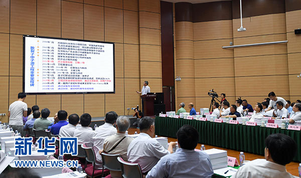8月23日,在广东东莞市大朗镇,中国散裂中子源工程总指挥、中国科学院院士陈和生在中国散裂中子源国家验收会上介绍中国散裂中子源有关情况。新华社记者 陈晔华 摄