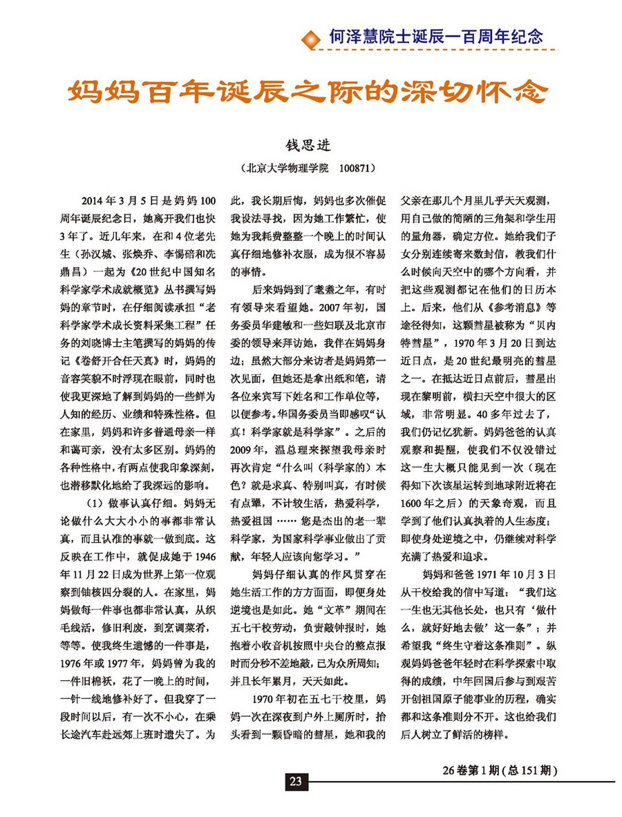 妈妈百年诞辰之际的深切怀念(钱思进)