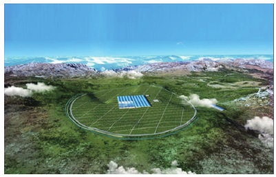 图6 由分布在1平方公里范围的各种探测器组成的高海拔宇宙线观测站(LHAASO)的远景示意图