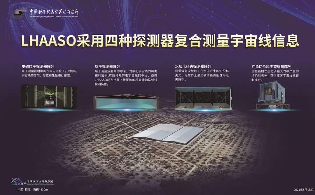 注:LHAASO在银河系内发现大量超高能宇宙加速器,并记录到能量达1.4拍电子伏的伽马光子(拍=千万亿),这是人类观测到的最高能量光子,突破了人类对银河系粒子加速的传统认知,开启了“超高能伽马天文学”的时代。这些发现2021年5月17日发表在Nature:https://www.nature.com/articles/s41586-021-03498-z。