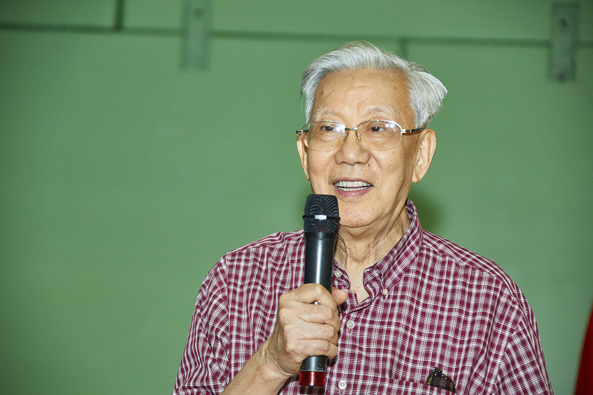 2018年8月24日,参加中国散裂中子源通过国家验收庆祝会,与马力(左)、傅世年交谈