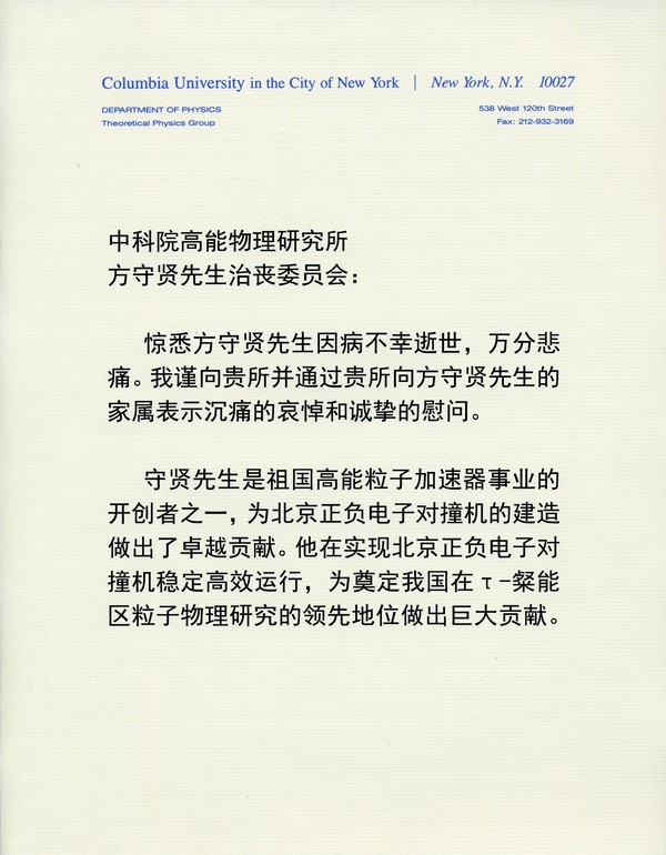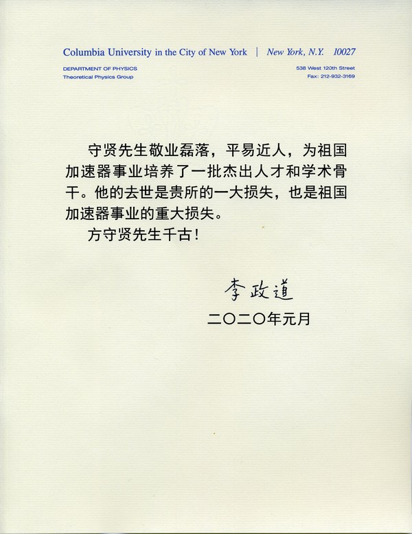 李政道唁电