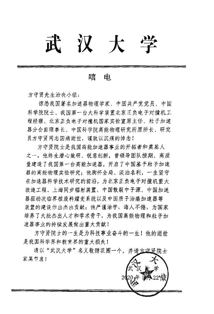 武汉大学唁电
