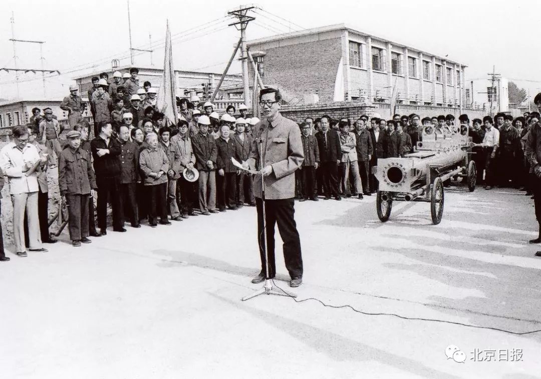 1986年5月6日,北京正负电子对撞机第一根加速管安装前,工程总经理方守贤做动员。