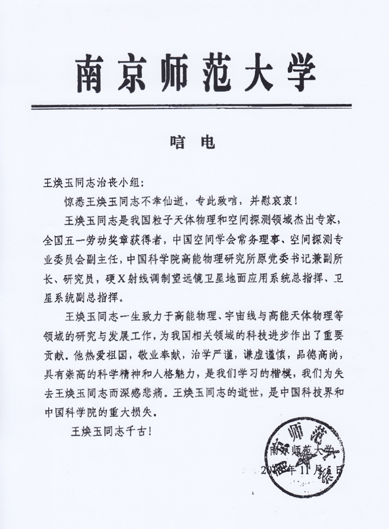 南京师范大学唁电