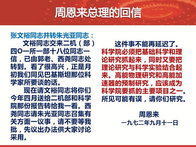 纪念周恩来总理一九七二年九月十一日关于高能物理发展的批示四十周年