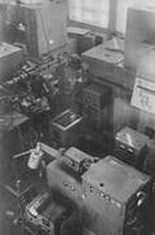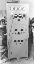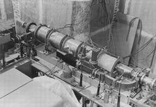 当然,更大的问题是开始时我们什么仪器设备几乎都没有,国内又买不到。电子直线加速器是一个微波型加速器,因此微波实验室是必需的。但是我们连最基本的微波讯号发生器都没有,波导驻波测量器没有,波导元件也没有。怎么办?答案只有一个:自己做。我们自己用反射速调管制作了讯号发生器,尽管性能不太好,又很笨重,但也能用它做实验了。还制作出了波导驻波测量线。当时国内还没有生产出十公分波导管,我们就设计用黄铜板拼接再焊上法兰并镀银,制成各种波导元件。连检波用的晶体架也是自己设计由工厂加工制成,讯号放大器也是自己做的。后来,通过香港才买到一台美国产的微波讯号发生器,国内工业也发展了,可以买到一些仪器和设备了,进一步完善了微波实验室。国内的工厂也生产出了S波段无氧铜波导管(在此之前我们曾用电铸的方法制造了能在真空状态下使用的铜波导管),使我们能开始设计制造加速器的波导传输系统所需的各种波导元件并进行测试,并开始为加速管的测量做准备。1958年,当时成都电讯工程学院聘请的苏联微波专家列别捷夫来所参观后对我们的工作大加赞赏,认为是他在中国看到的最好的微波实验室。