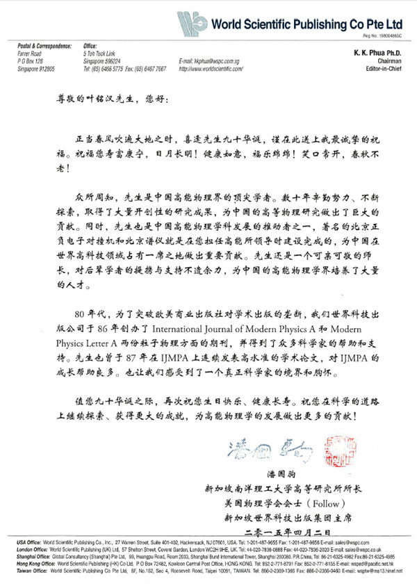 新加坡南洋理工大学高等研究所所长潘国驹贺信